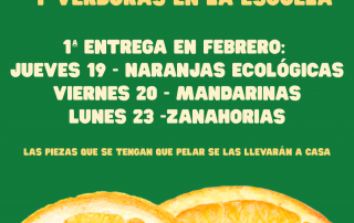 Nuestro centro participa en el Plan de Consumo de Frutas y Verduras en la Escuela, una iniciativa que promueve hábitos de alimentación saludable entre el alumnado. Durante el mes de febrero se realizará la primera entrega, con el siguiente calendario: Jueves 19: naranjas ecológica. Viernes 20: mandarinas. Lunes 23: zanahorias. Las piezas [...]
